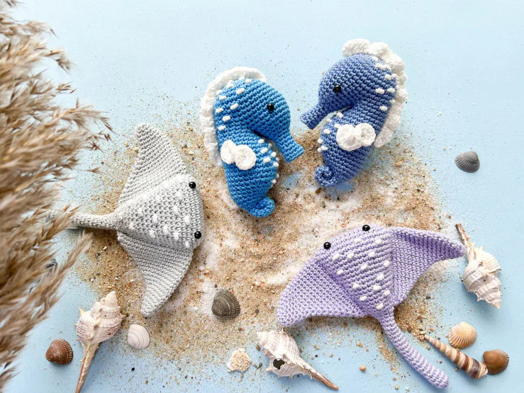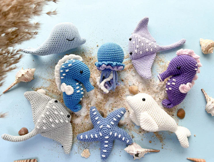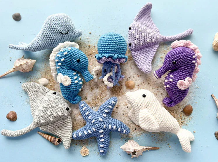 Crochet Sea Animals: Sea Horse, Jellyfish, Beluga, Whale, Starfish and Stingray